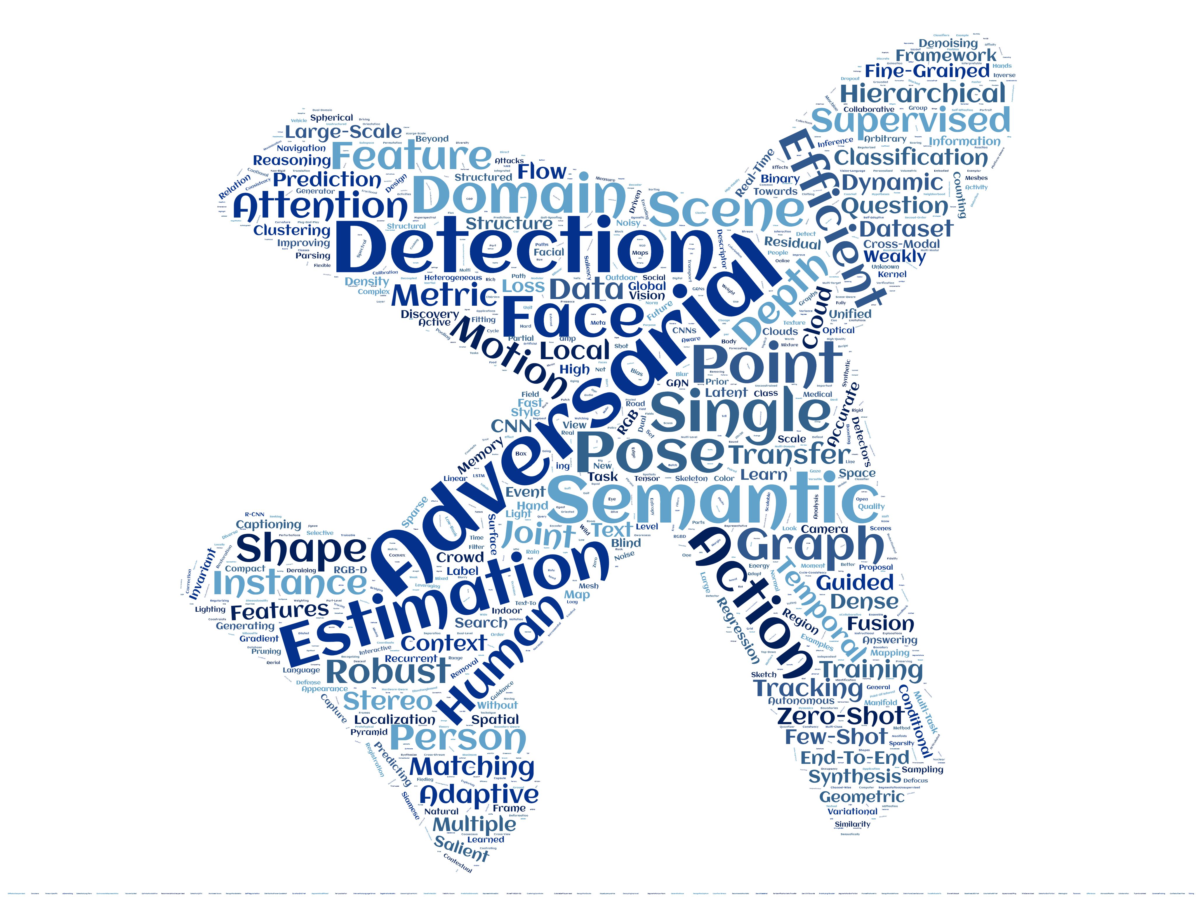 - 중간 크기 : Domain, Scene, Adaptive, Attention, Shape, Single, Feature, Efficient