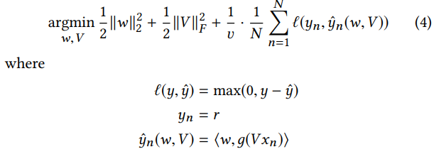 위에서 확인할 수 있듯이, 이 알고리즘은 가장 먼저 경계 함수의 bias인 $r$을 고정하고 $w$와 $V$에 대한 학습을 아래 식(4)로 진행하고,