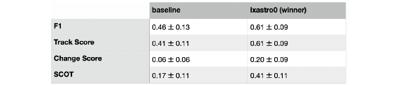 이 방법은 다양한 지표에서 성능 향상을 보여주었는데 무엇보다 Change Detection과 관련된, 대회에서 정의한 SCOT에서 큰 성능 향상을 보였습니다.