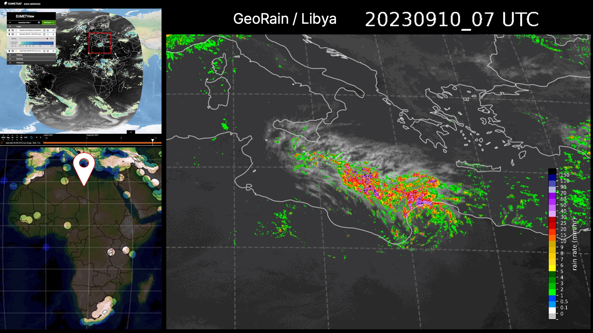 아래 이미지는 리비아 홍수가 일어난 당시의 데이터를 확보하여 GeoRain 솔루션을 적용한 결과값이다. 레이더 센서가 없는 리비아에서도 이런 결과를 낼 수 있다는 것은 에스아이에이의 모델이 전 지구적으로 확대할 수 있다는 것을 증명하고 기상위성이 도달하는 곳이라면 정확한 기상 정보 제공으로 사전 대응을 할 수 있다는 큰 시사점을 제공한다.