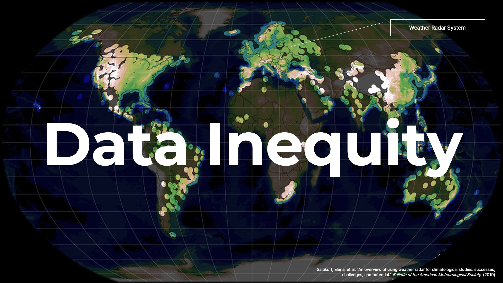기후 변화 예측을 위해 주기적으로 수집되는 데이터를 통한 양상 파악이 중요한데, 아쉽게도 우리는 데이터의 불균형 속에 살고있다. 기상 기후 정보는 주로 기상 레이더 망이 설치된 지역의 데이터를 통해 우리의 실생활에 조기 경보나 날씨 정보 등으로 다가오고 있다. 여기서 우리가 놓치기 쉬운 고정관념은 전 세계 모두가 평등한 정보를 제공받고 있을 것이란 추측이다. 기상 레이더는 설치와 유지보수에 큰 비용이 발생하고, 이로 인해 개발도상국 등에서는 설치가 어려운 것이 현실이다. 레이더가 설치되지 않은 지역은 정확한 조기 경보와 날씨 정보를 받기 어려워 기후 변화를 사전에 대비할 수 있는 역량이 현저히 낮다.