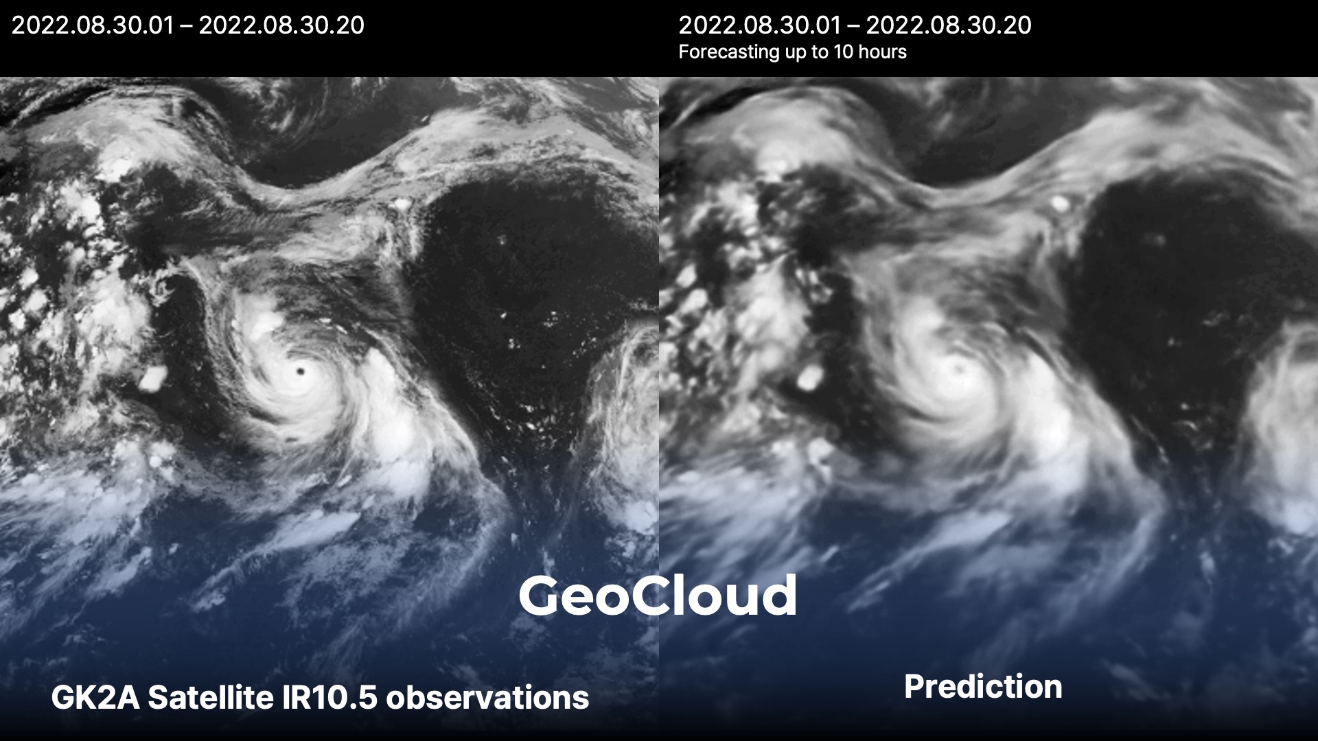 구체적인 솔루션을 하나씩 살펴보자. ‘GeoCloud’는 미래 프레임을 예측하여 구름의 이동을 예측하는 솔루션이다. 생성되는 구름들이 얼마나 위협적으로 진화하고, 어떤 지역에 영향을 미칠지 결정하는데 기여한다.